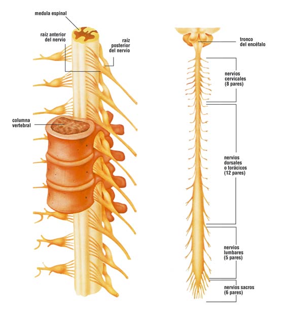 - La porción delantera son fibras motoras que transmiten los impulsos desde el encéfalo hacia los nervios periféricos.